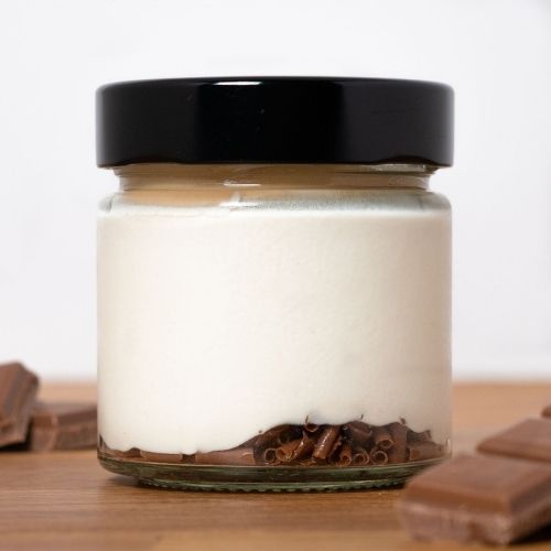 Suave y sedosa crema de avellanas sobre virutas de chocolate.